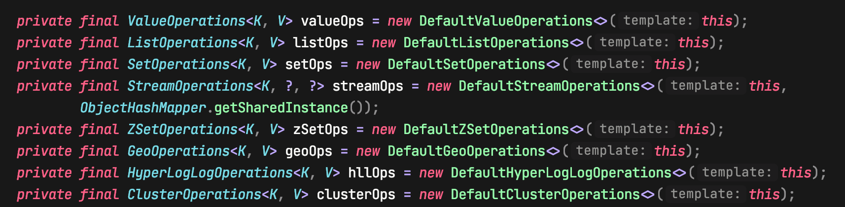 RedisTemplate ๋ <String, PostDto.List> ์์ <String, RecentLog> ๋ก ๋ณ๊ฒฝํ๊ณ , opsForList() ๋ฅผ opsForZSet() ์ผ๋ก ๋ณ๊ฒฝํด์ค๋๋ค. RedisTemplate ์๋ ๋ค์ํ ๋ฉ์๋๋ค ์ค๋น๋์ด ์๋๋ฐ, RedisTemplate๋ก ๋ค์ด๊ฐ๋ฉด ๋ค์๊ณผ ๊ฐ์ ๋ฉ์๋๋ค์ ํ์ธํ ์ ์์ต๋๋ค.