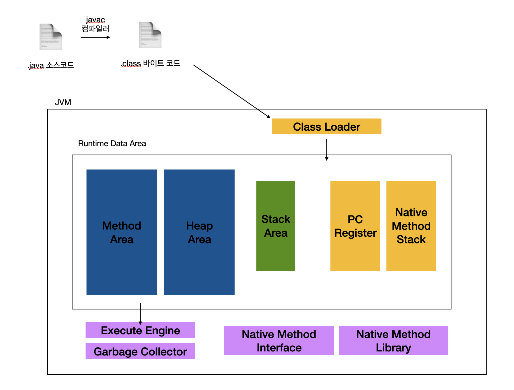구체적으로 메모리 영역을 공부하기 전에 JVM이 자바 소스코드를 어떻게 OS에서 실행하는지 과정을 살펴봅시다.